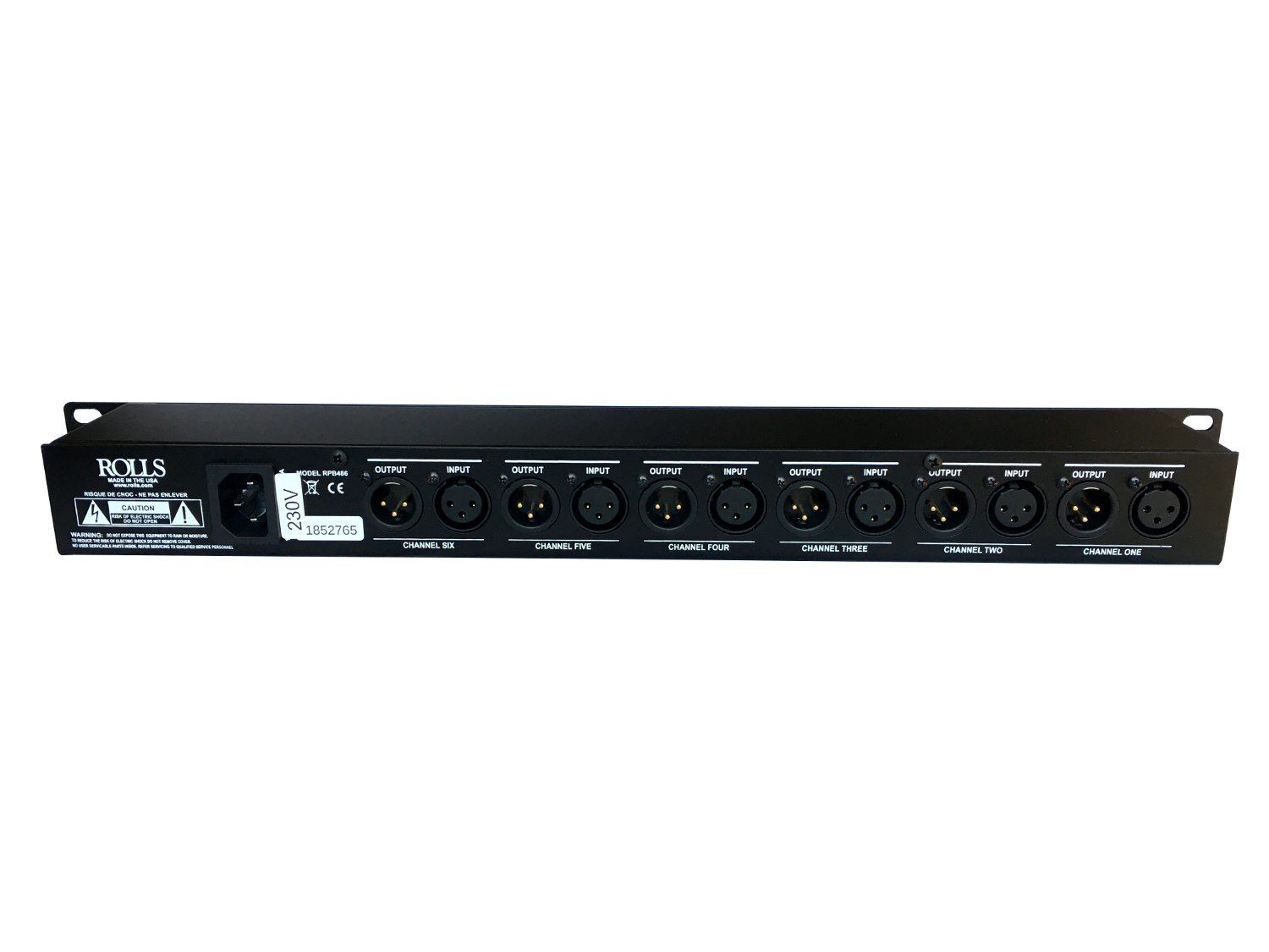 RPB486 Phantom Hex 6-channel 48v Phantom Power Supply The ROLLS RPB486 PHANTOM HEX 6 channel phantom power supply powers up to 6 condenser microphones with 48 volts of ultra clean phantom power. The outputs are XLR balanced. To eliminate the possibility of any DC voltages, the RPB486 features pull-down resistors and isolation capacitors on all outputs.
