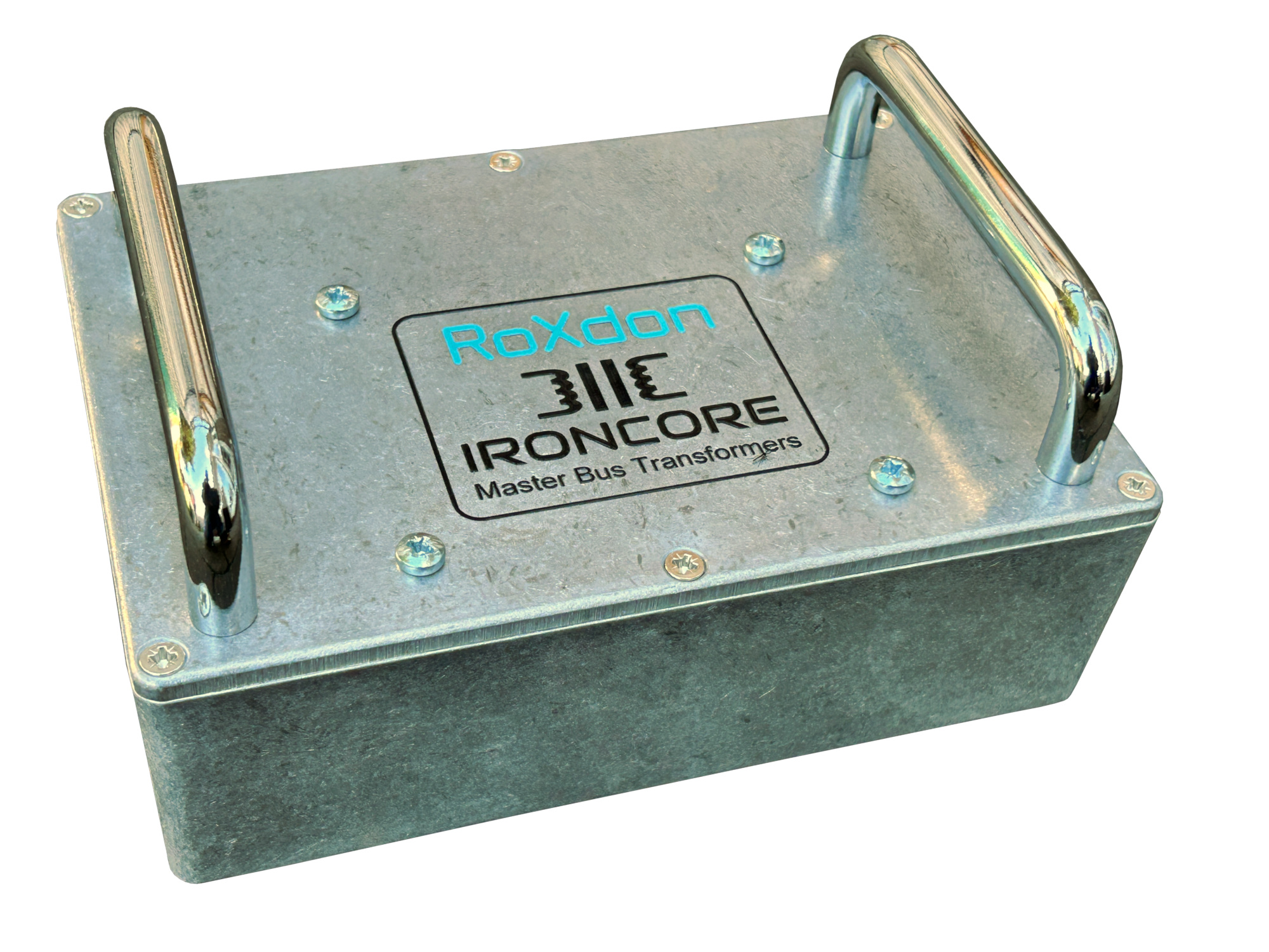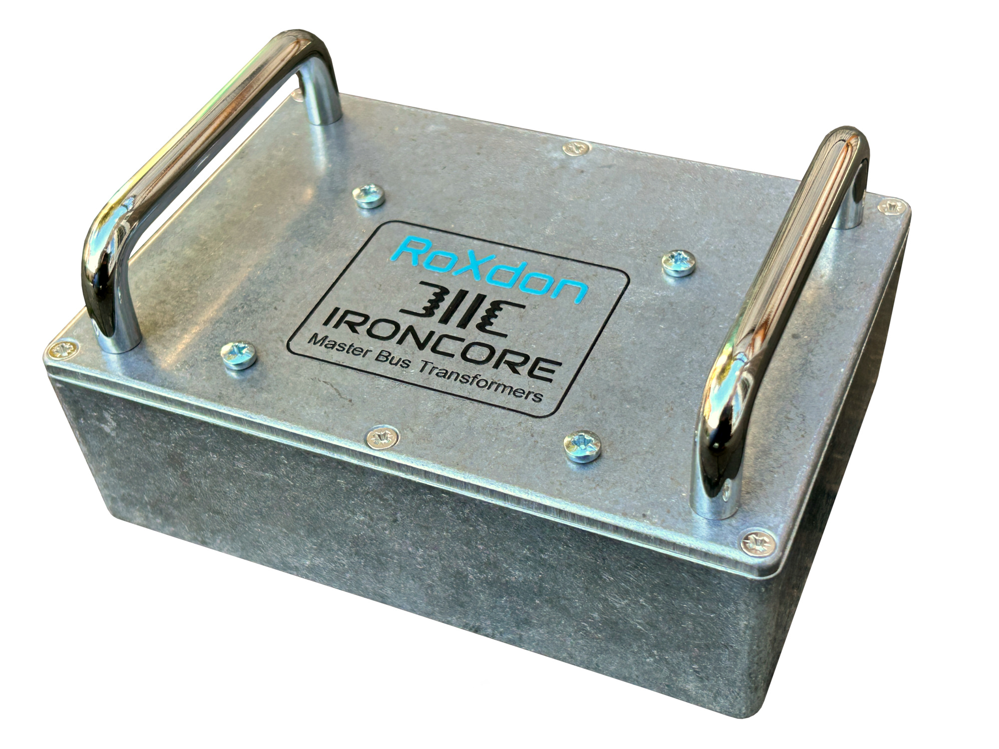 RoXdon IRONCORE Master Bus Transformers BRITISH HANDBUILT SOUND EQUIPMENT The RoXdon IRONCORE Master Bus Transformers are designed to be connected to the balanced line outputs of a studio mixer and provides the unique subtle coloration that Transformers add to the audio and featured in classic vintage audio equipment like Neve, Harrison and API. This classic character can be heard on countless music recordings through the years and adds that final transformer 'warmth' and 'glue' to the mix. Audio transformers impart analog flavor to audio signals, adding harmonics and warmth to our digital recordings. The analog flavor that is imparted to the audio signal is a function of the size and material the core is made from. Our Vintage style audio transformers are constructed with an iron core and deliver warm sounding harmonics to the audio signal, due to the lower permeability of the core material. The RoXdon IRONCORE is a hand built hardwired (no internal connectors or PCB's) passive transformer audio unit featuring 2 channel (left & right) inputs & outputs via XLR connections all housed in a diecast alluminium enclosure providing comprehensive electrical shielding. The two heavy duty custom made Z11 Iron Core Transformers have matched parameters to ensure that the left and right sounds are balanced and coordinated and also include a tuned RC Zobel Network circuit to prevent high frequency transformer ringing. Add some vintage vibe to your mixes with the RoXdon IRONCORE. FEATURES *
